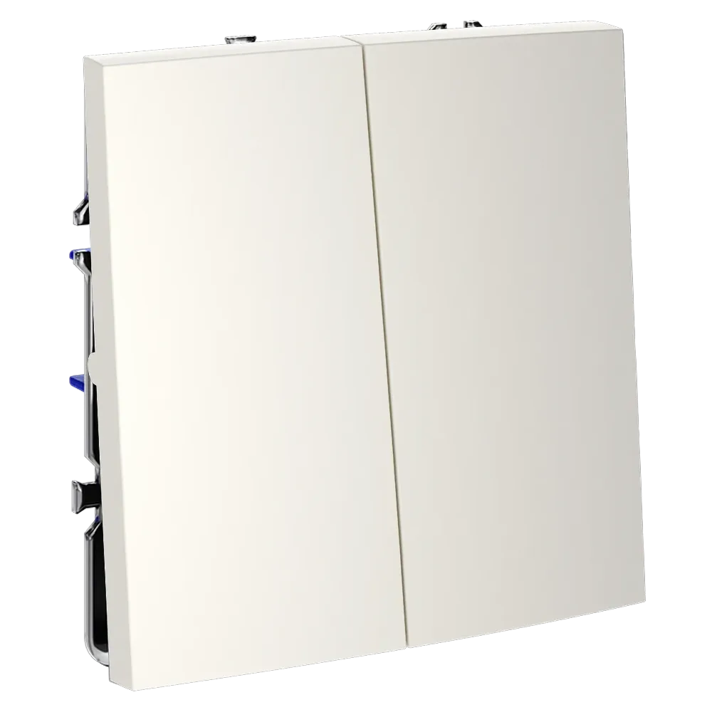 Двухклавишный проходной переключатель VOLTUM S70 в цвете «хлопок» — это продвинутое решение для независимого управления двумя группами освещения из двух и более точек. Идеально подходит для просторных гостиных, спален с отдельной зоной отдыха, офисов и многоуровневых помещений, где требуется гибкость и удобство управления светом — например, у входа и у изголовья кровати.
